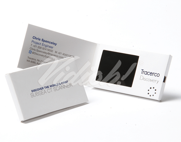 A Video business card combines the traditional print business card format with an LCD screen, every card is capable of seamlessly playing impactful video and audio content. To activate it simply open the card and the video content will start playing automatically.